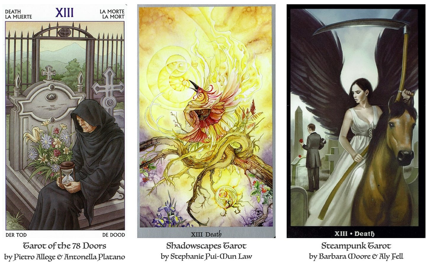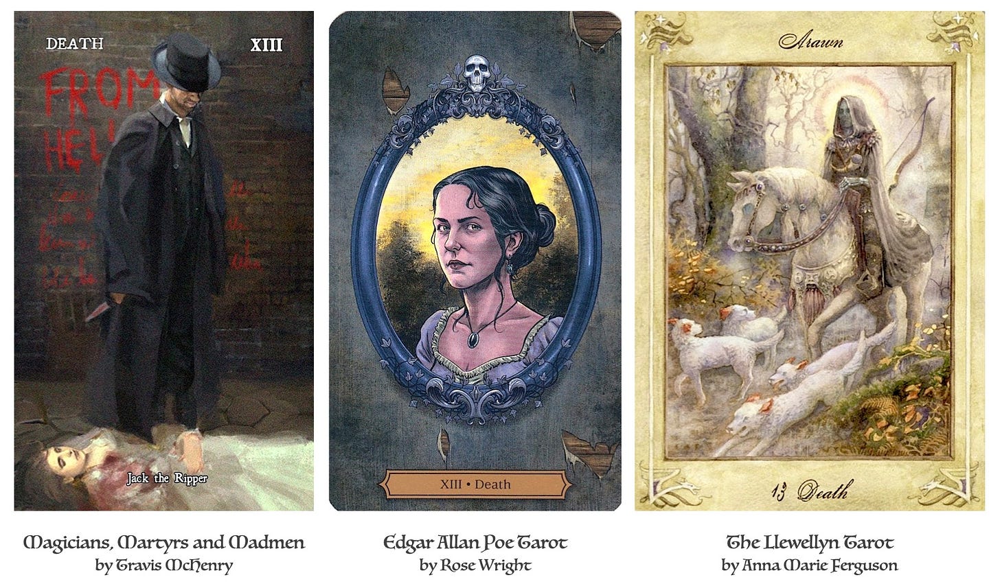 I have about a hundred plus decks, - yeah, a recovering tarot hoarder- so the idea of picking three various Deaths seemed pretty wild. And brilliant, still.